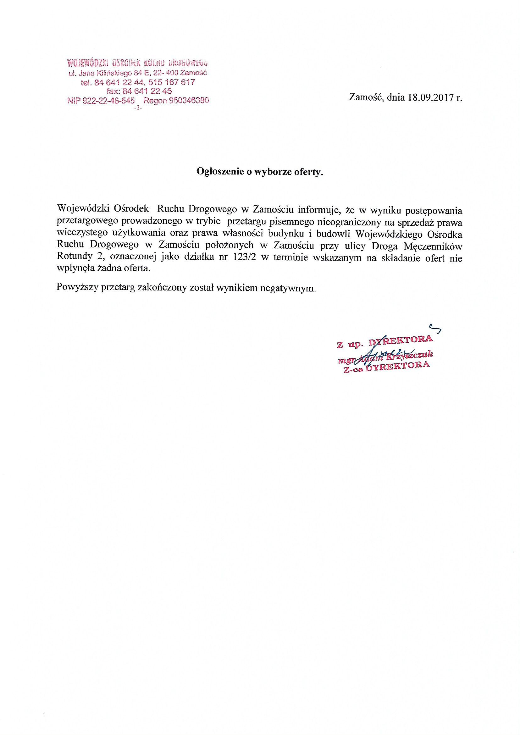 powrót do listy przetargówPrzetarg nieograniczony na sprzedaż nieruchomości