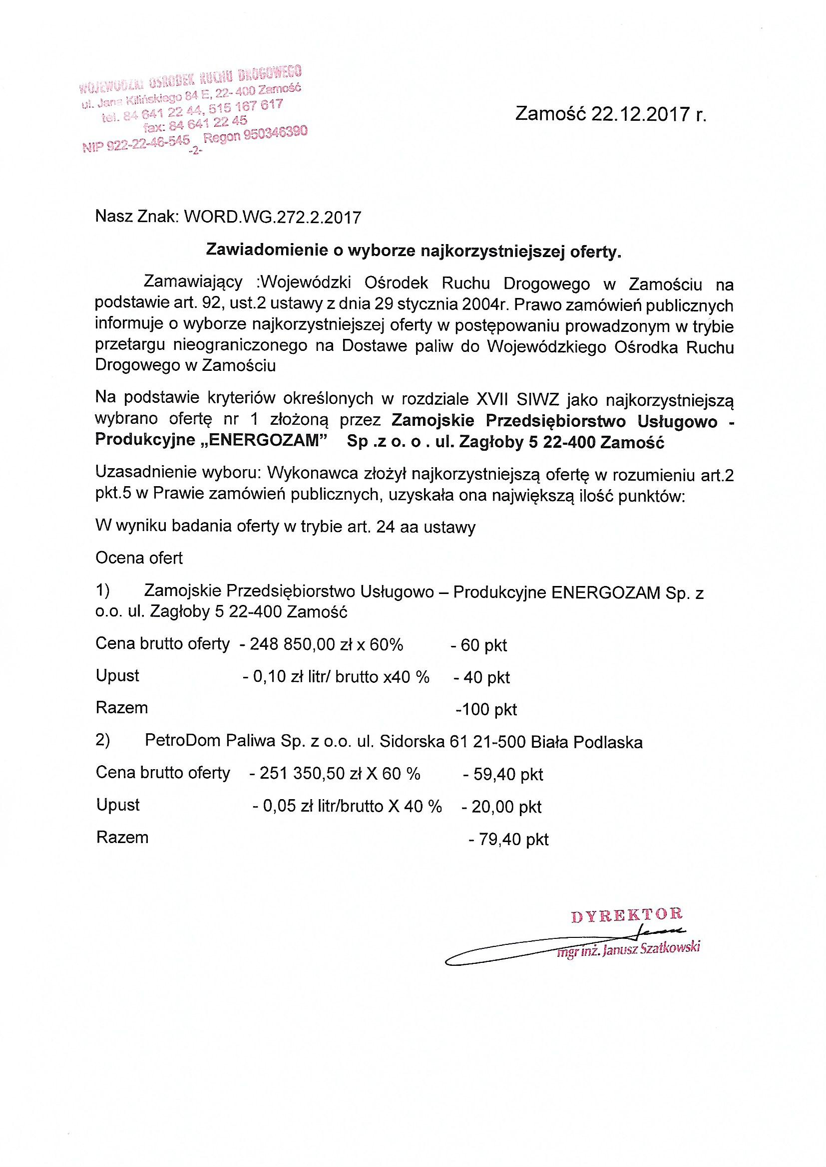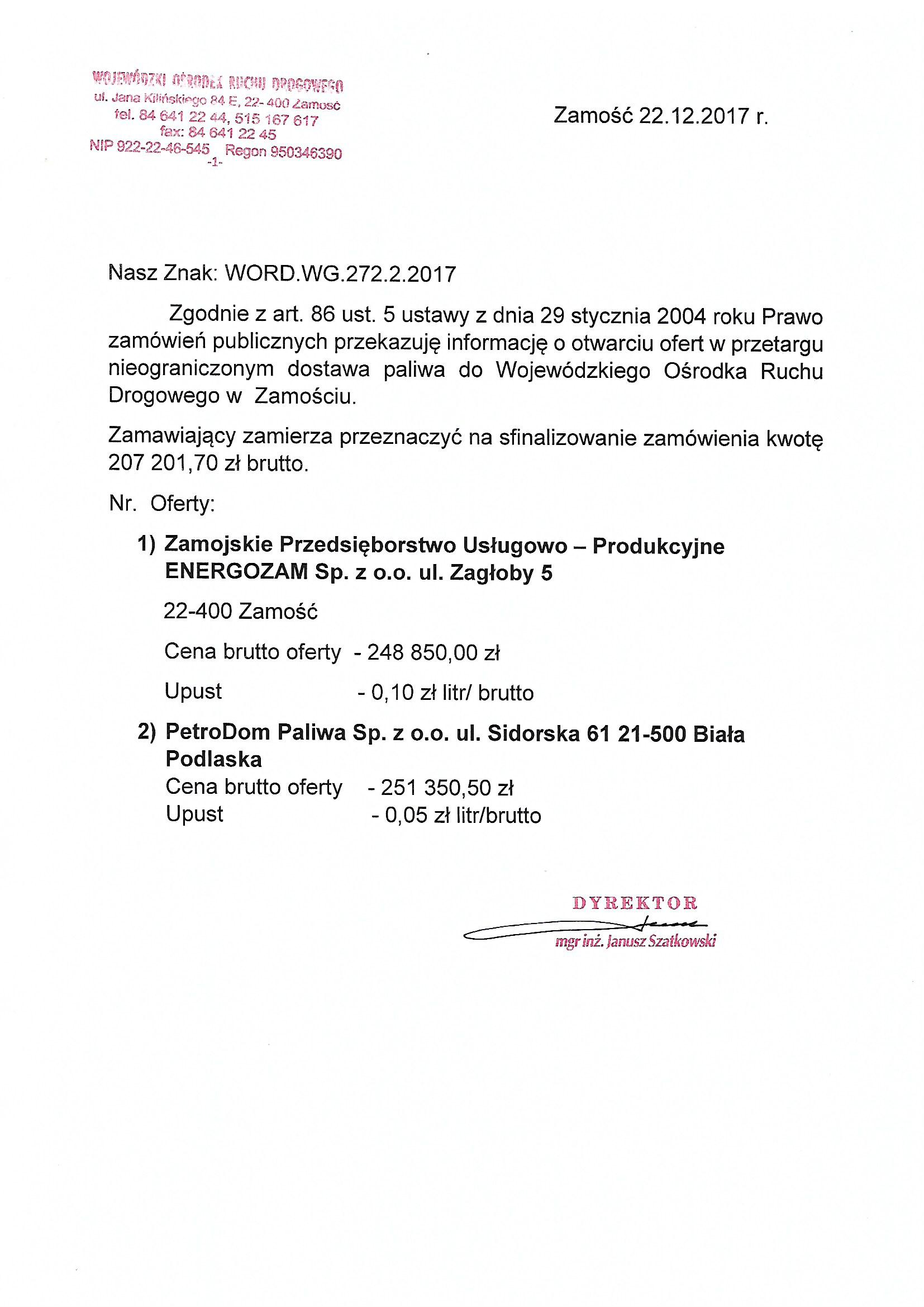 Wojewódzki Ośrodek Ruchu Drogowego: Dostawa paliw dla Wojewódzkiego Ośrodka Ruchu Drogowego w Zamościu