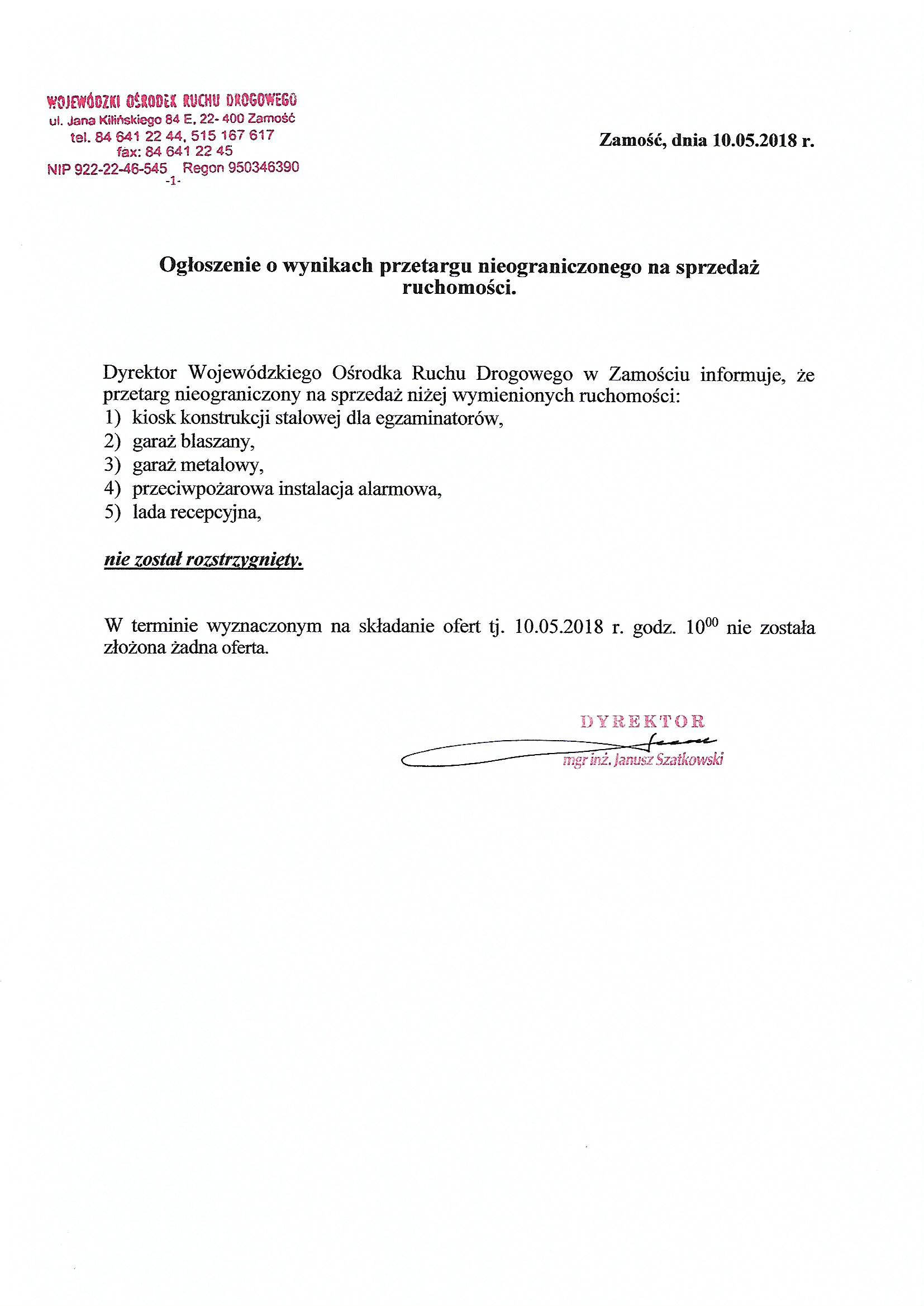 powrót do listy przetargówPrzetarg nieograniczony na sprzedaż ruchomości