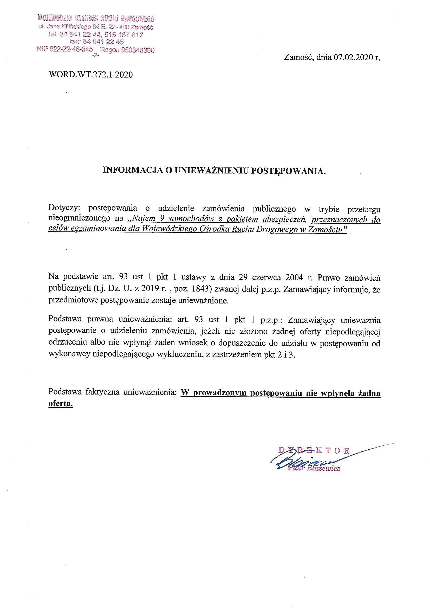 Numer referencyjny: WORD.WT.272.1.2020