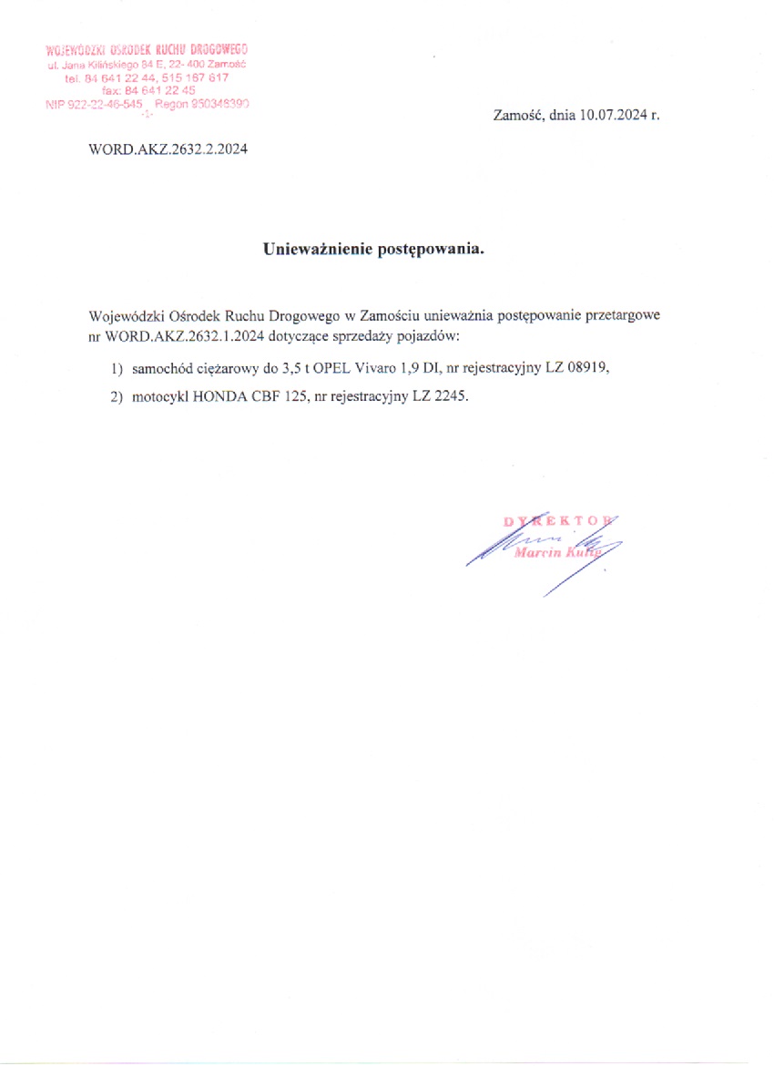 powrót do listy przetargówOgłoszenie o przetargu na sprzedaży pojazdów
